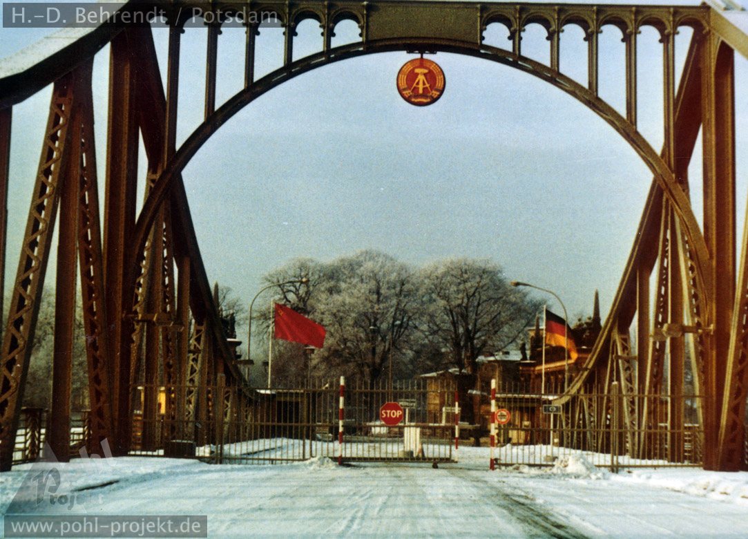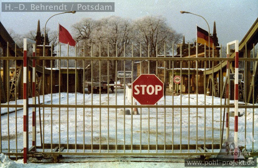 Mehrere Ansichten vom 1. Dezember 1985, wo die Glienicker Brücke nach dem Abschluß der Rekonstruktionsmaßnahmen der DDR - Seite für die Abfertigung des Diplomatenverkehrs geöffnet wurde. Während der Bauarbeiten war die Grenzpassage der Fahrzeuge der westlichen Militär - Verbindungs - Missionen stets gewährleistet.