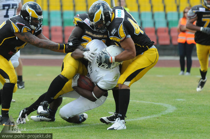 Berlin Adler vs London Blitz am 27.5.2012 in Berlin - Friedrich-Ludwig-Jahn-Stadion , Football - Bilder vom Spiel