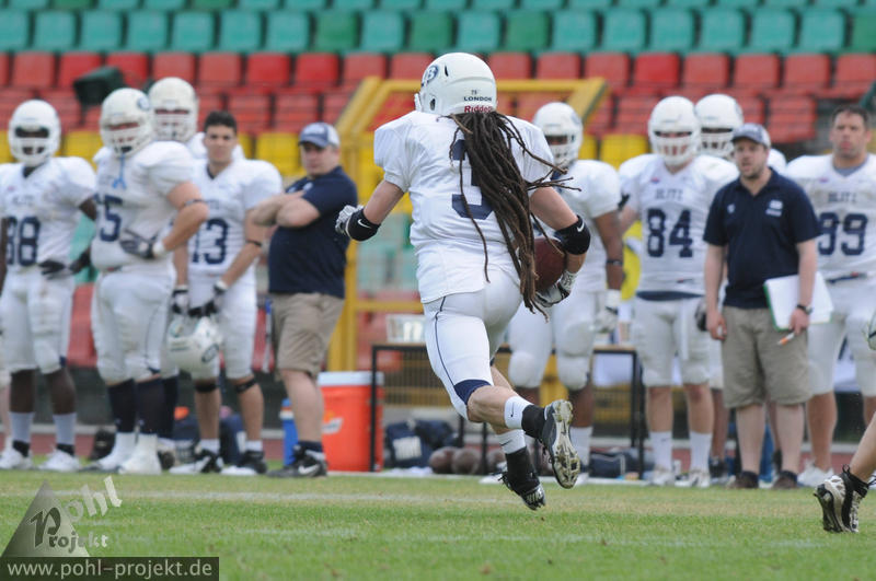 Berlin Adler vs London Blitz am 27.5.2012 in Berlin - Friedrich-Ludwig-Jahn-Stadion , Football - Bilder vom Spiel