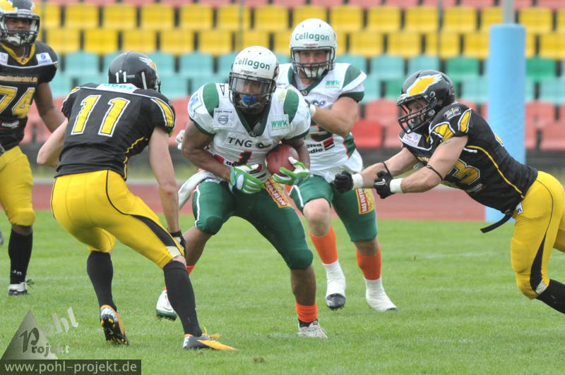 Berlin Adler vs Kiel Baltic Hurricanes am 24.6.2012 in Berlin - Friedrich-Ludwig-Jahn-Stadion , Football - Bilder vom Spiel