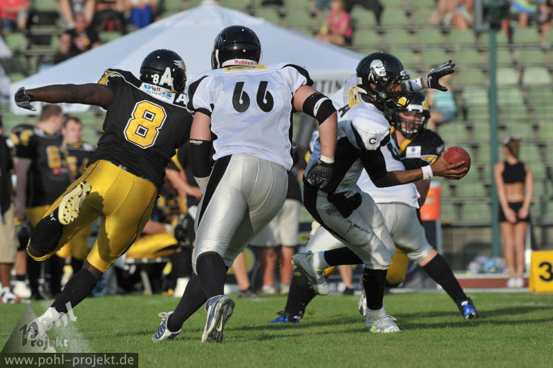 Berlin Adler vs Berlin Rebels am 18.8.2012 in Berlin - Friedrich-Ludwig-Jahn-Stadion , Football - Bilder vom Spiel