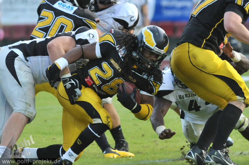 Berlin Adler vs Berlin Rebels am 18.8.2012 in Berlin - Friedrich-Ludwig-Jahn-Stadion , Football - Bilder vom Spiel