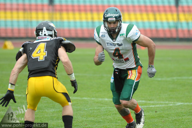 Berlin Adler vs Kiel Baltic Hurricanes am 11.5.2013 in Berlin - Friedrich-Ludwig-Jahn-Stadion , Football - Bilder vom Spiel