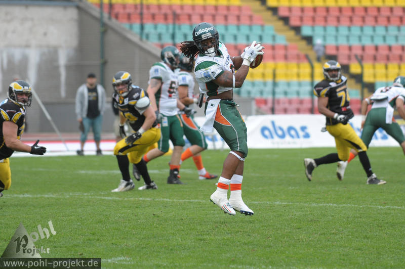 Berlin Adler vs Kiel Baltic Hurricanes am 11.5.2013 in Berlin - Friedrich-Ludwig-Jahn-Stadion , Football - Bilder vom Spiel