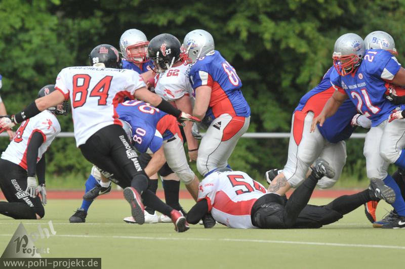 Berlin Bears vs Frankfurt-Oder Red Cocks am 28.7.2012 in Berlin - DEGEWO-Stadion Lipschitzallee, Football - Bilder vom Spiel