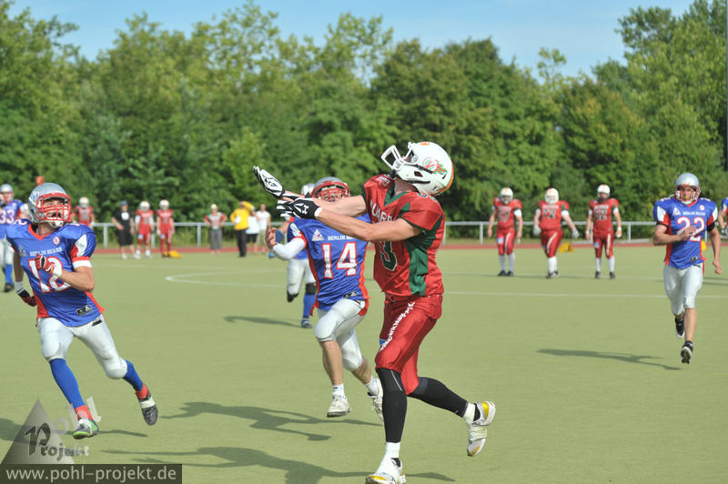 Berlin Bears vs Magdeburg Virgin Guards am 18.8.2012 in Berlin - DEGEWO-Stadion Lipschitzallee, Football - Bilder vom Spiel