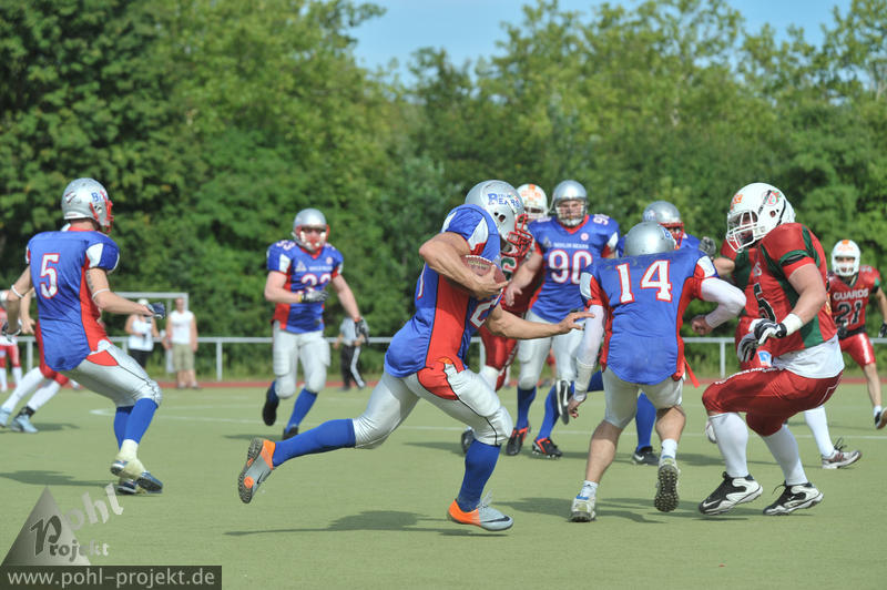 Berlin Bears vs Magdeburg Virgin Guards am 18.8.2012 in Berlin - DEGEWO-Stadion Lipschitzallee, Football - Bilder vom Spiel