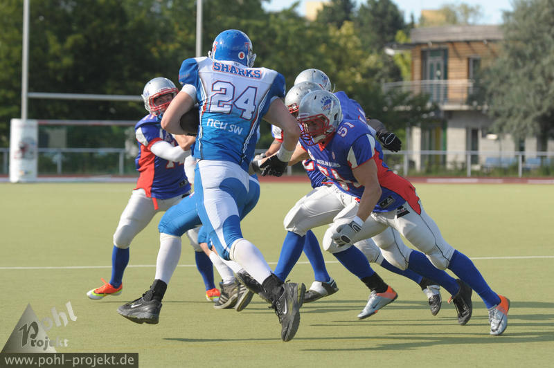 Berlin Bears vs Neubrandenburg Tollense Sharks am 24.8.2013 in Berlin - DEGEWO-Stadion Lipschitzallee, Football - Bilder vom Spiel