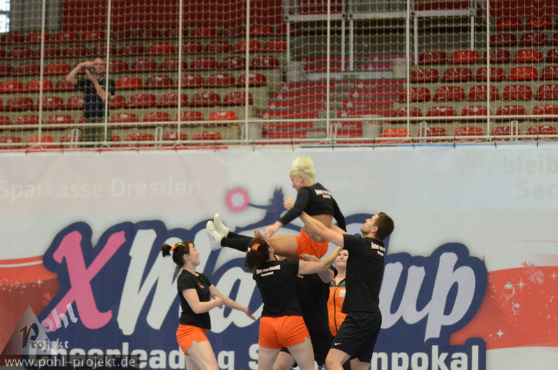 XMasCup 2011 vs Blue Pearls, Pretty Pearls, Mini Pearls und Shiny Pearls von den Dresden Monarchs, CATWALK, Kiddy Cats, Lunicats, LCV Dancer und DMC vom Lunatics Cheerleder e.V., Leonids und Cheeky Lionettes von den Leipzig Lions, Black Lions, Blue Monties, Black Maniacs und Dancing Maniacs vom CVV CheerMANIA Auerbach e.V., FlipBeez, FreeMotion und Showcolate vom SC DHfK Leipzig, Golden Dynamites, Dynaminis und Dynamix vom Cheerleader verein Dresden, Sweet Angelz, Junior Angelz, Crazy Angelz und White Angelz von Angelz Cheerleader Plauen, Wild Up von ETC Crimmitschau, FOC Four One Clover vom BV Chemnitz 99, Move it Peewees und Move it Juniors vom Move it e.V. Erfurt, MJ`s5 vom ZFC Meuselwitz, Blizzards und Calling 112 vom SpVgg Spitzgrund 72 e.V., Plantastics, Dancing Leaves SR und Dancing Leaves JR vom SV Grün Weiß Mohsdorf, Little Arrows vom Arrows Pirna e.V., Peaches Juniors GS vom The Peaches Cheerleader Zwickau, SG xyztitle the flying V aus Riesa am 3.12.2011 in Dresden - Margon-Arena, Football - Bilder vom Spiel