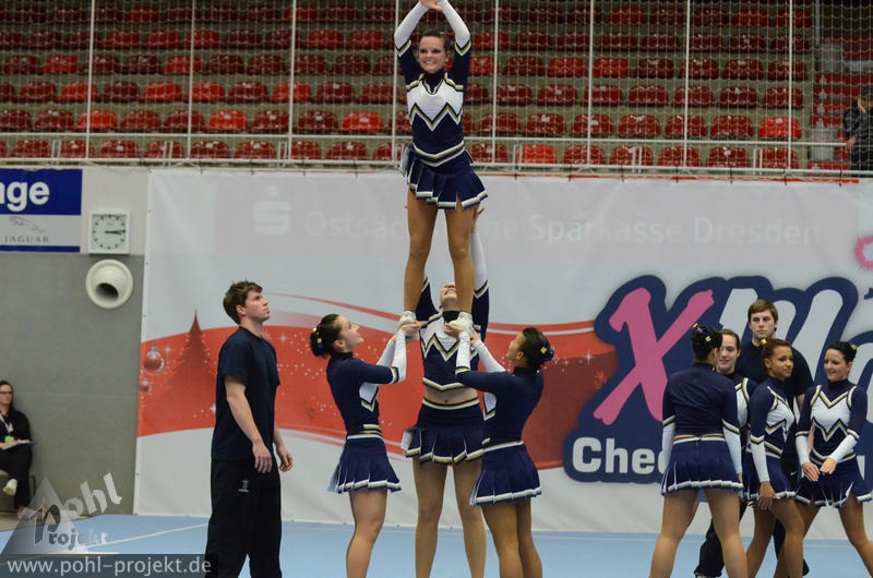 XMasCup 2011 vs Blue Pearls, Pretty Pearls, Mini Pearls und Shiny Pearls von den Dresden Monarchs, CATWALK, Kiddy Cats, Lunicats, LCV Dancer und DMC vom Lunatics Cheerleder e.V., Leonids und Cheeky Lionettes von den Leipzig Lions, Black Lions, Blue Monties, Black Maniacs und Dancing Maniacs vom CVV CheerMANIA Auerbach e.V., FlipBeez, FreeMotion und Showcolate vom SC DHfK Leipzig, Golden Dynamites, Dynaminis und Dynamix vom Cheerleader verein Dresden, Sweet Angelz, Junior Angelz, Crazy Angelz und White Angelz von Angelz Cheerleader Plauen, Wild Up von ETC Crimmitschau, FOC Four One Clover vom BV Chemnitz 99, Move it Peewees und Move it Juniors vom Move it e.V. Erfurt, MJ`s5 vom ZFC Meuselwitz, Blizzards und Calling 112 vom SpVgg Spitzgrund 72 e.V., Plantastics, Dancing Leaves SR und Dancing Leaves JR vom SV Grün Weiß Mohsdorf, Little Arrows vom Arrows Pirna e.V., Peaches Juniors GS vom The Peaches Cheerleader Zwickau, SG xyztitle the flying V aus Riesa am 3.12.2011 in Dresden - Margon-Arena, Football - Bilder vom Spiel