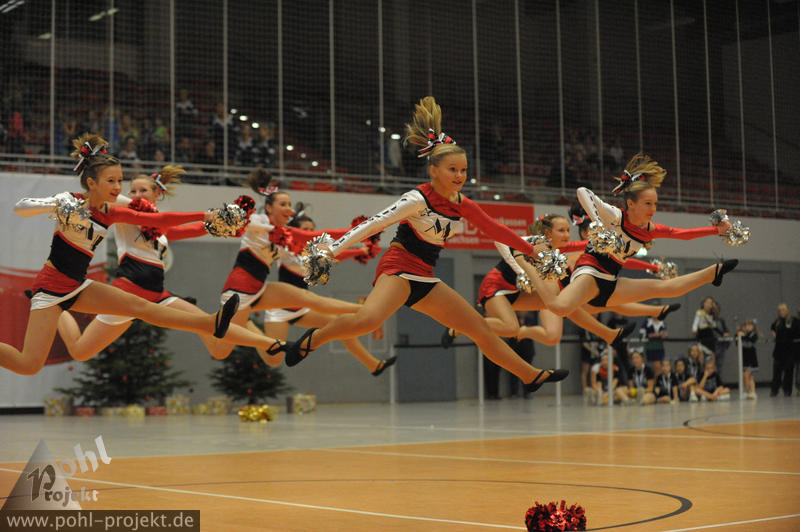 XMasCup 2012 vs Blue Pearls, Pretty Pearls, Mini Pearls und Shiny Pearls von den Dresden Monarchs, Lunicats vom Lunatics Cheerleder e.V., Freak Fusion, All for one, Kathi,Julia, Cynthia von den Leipzig Lions, Black Lions, Purple Lions, devils Dynamite und Dancing Maniacs vom CVV CheerMANIA Auerbach e.V., FreeMotion und Showcolate vom SC DHfK Leipzig, und noch viele mehr .... am 1.12.2012 in Dresden - Margon-Arena, Football - Bilder vom Spiel
