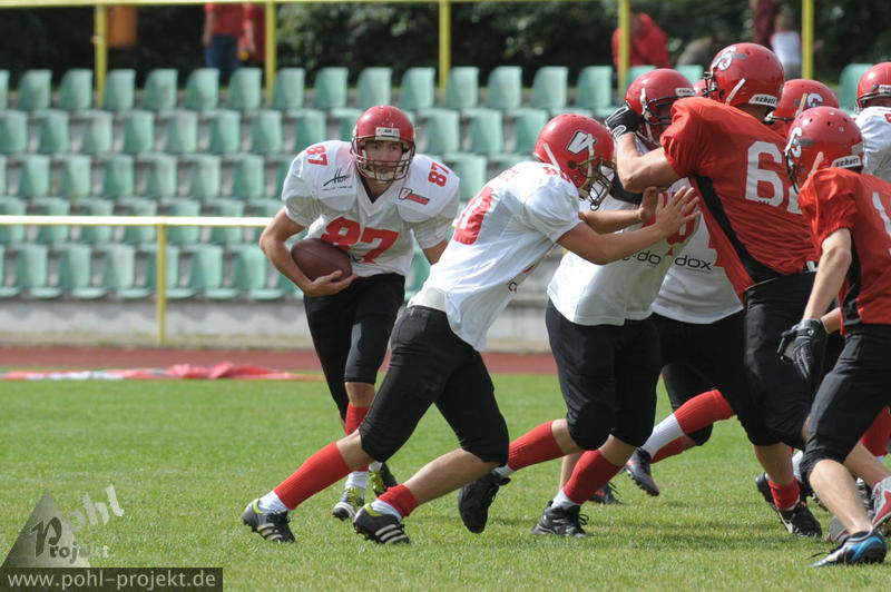 Spandau Bulldogs Jugend vs Chemnitz Varlets am 1.9.2013 in Berlin - Spandau - Helmut-Schleusener-Stadion, Football - Bilder vom Spiel