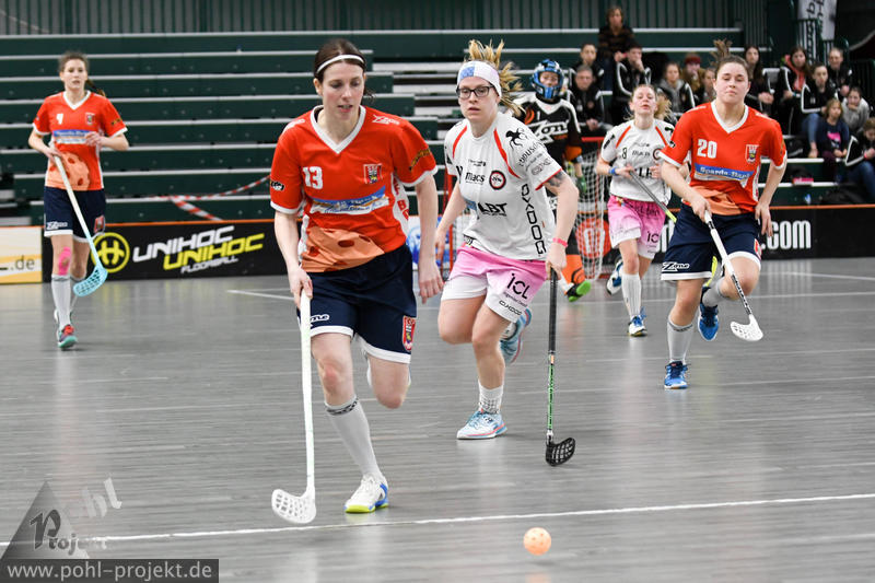 Deutsche Floorball - Meisterschaft mit SSF Dragons Bonn, Dümptner Füchse, SG Wernigerode-Chemnitz, MFBC Grimma, BAT Berlin, Red Devils Wernigerode, TV Lilienthal und UHC Weißenfels vs am 16-17.03.2018 in Berlin - Sömmeringhalle, Floorball - Bilder vom Spiel